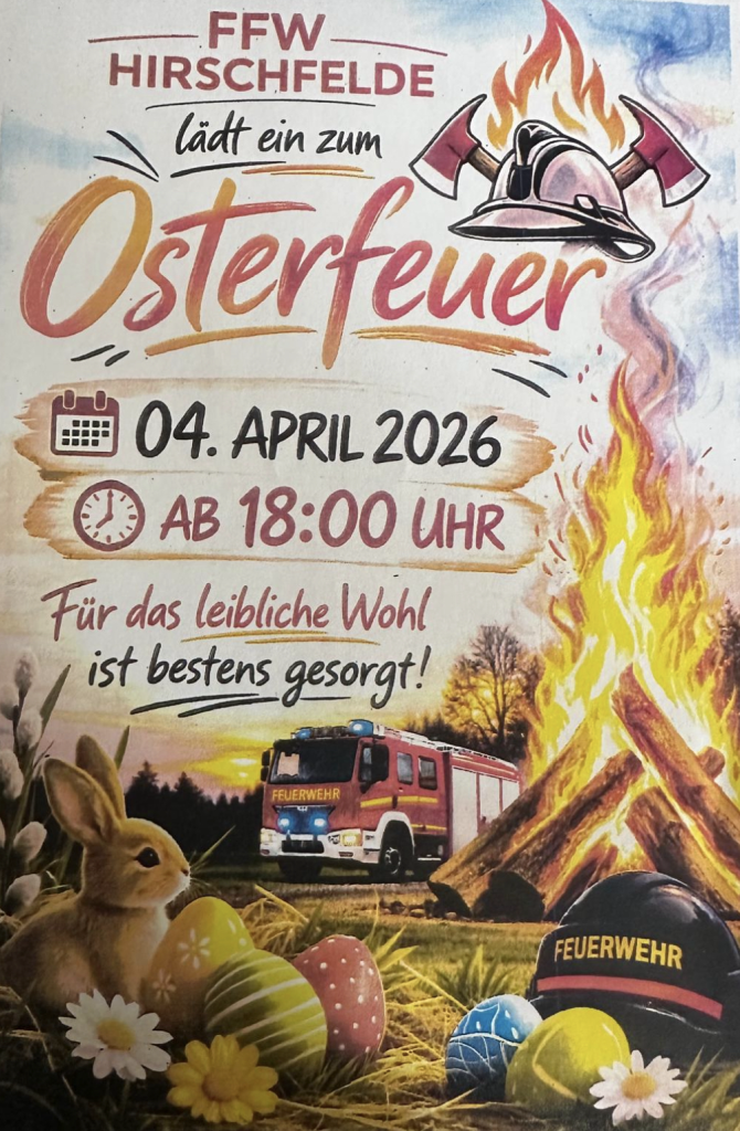 Am 04. April 2026 lädt die Feuerwehr Hirschfelde wieder zum Osterfeuer ein.